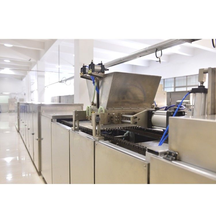 1Наш.Высококачественная машина для формования шоколада с тремя депозиторами Весь процесс полностью автоматический, включая нагрев форм, отложение, вибрацию пластинки формы, переворачивание формы, отложение наполнения,Кормление измельченными орехами, покрытие, охлаждение, разформатирование и транспортировка.